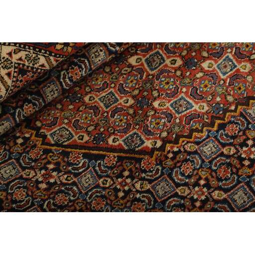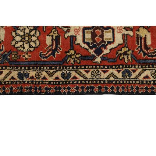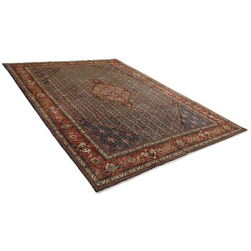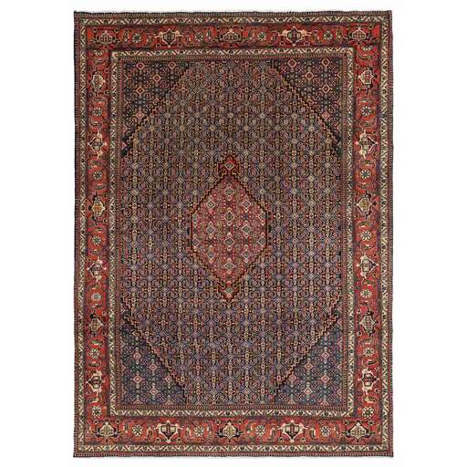 Ardebil and Meshkin (or Meshkinshahr) are situated in East Azerbaijan, east of Tabriz. Ardebil is the biggest and most important of the two cities, and it was home to the Safavaids, a royal family in 17th century Iran. The Safavid mosque and mausoleum complex is located in the city centre. The two 1542 rugs known as the Ardebil rugs, now shared between London and California, were originally placed in the mosque. The rugs produced in Ardebil and Meshkin today are heavily influenced by impressions from other parts of Azerbaijan; by the village rugs covered in geometrical patterns, and by the Tabriz rugs, with their simple patterns and medallions on a Herati base, which provides a beautiful contrast to the calm blue, red, or cream coloured base. Wool and cotton is used for the warp and weft, while the pile is generally wool, although there is a significant production of rugs with mixed silk/wool piles.