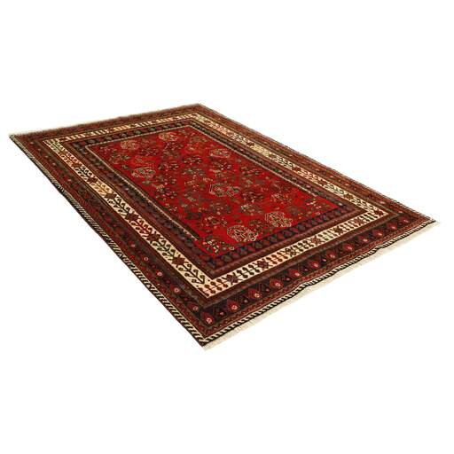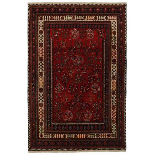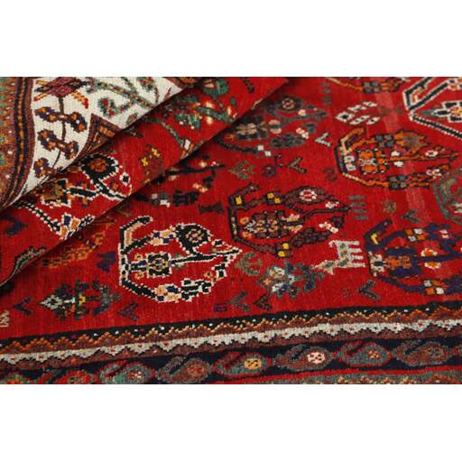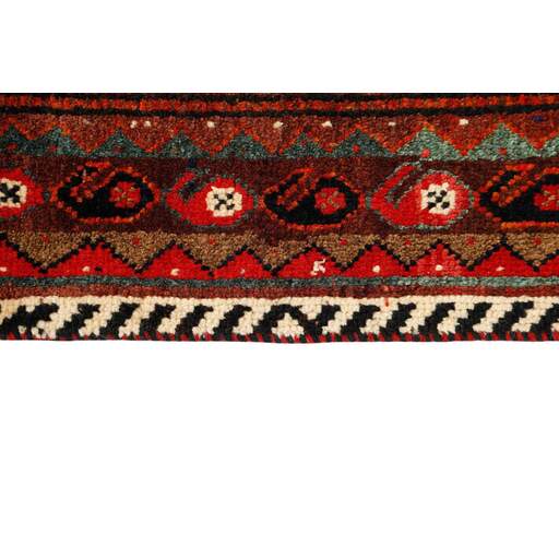 The Kashghai are Iran’s largest and most well known tribe. They speak a Turkish dialect, and are believed to have come from the Caucasus in the 18th century to their current areas, around Shiraz in the Fars Province of southern Iran. Their belligerent attitude has lead to conflicts with changing governments, as well as other tribes in the area. Both their rugs and the women’s clothing clearly show their skills and love of colours. Many subtribes exist, the most important ones being the Bilvedi, the Shishbouki, the Darashuri, and the Kashkuli. The Kashghai knot numerous types of rugs, but a characteristic product can be distinguished by its wool construction, the sturdy ridges on the back, its strong, deep colours (especially the red), as well as by the use of traditional motifs such as Harshang or the crab. The patterns are geometrical, typically with three or five medallions along the centre of the rug or in the middle and corners. The entire field is usually covered in small geometrical motifs. Persepolis motifs can often be found in the rugs. The Kashghai are also famous for their older crafts, such as horse blankets, saddlebags, and rope. The products of other tribes, such as the Kamseh and the Lori, are often mistaken for those of the Kashghai.