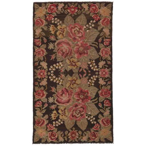 Rose Kelims are produced in Moldavia and northern Turkey. Rose Kelims are woven using a special weaving technique, giving the rugs a thinner, felt-like quality. Rose Kelim are older rugs and can easily be up to 50 years old. They are relatively rare and are hard to get hold of. The motifs are typically very flowered, in strong colours on a dark background.