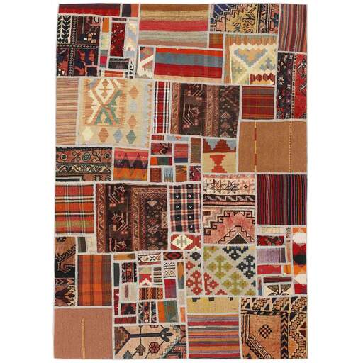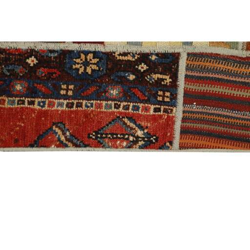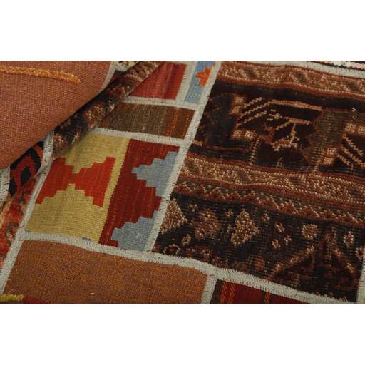 Tekkeh Kelims are produced from older Persian Kelims that have been cut into smaller pieces, sewn together, and given a back cover. Tekkeh means piece, so Tekkeh Kelim means a patchwork rug where many pieces have been sewn together. Tekkeh Kelims are available in many sizes and have thoroughly unique patterns. The rugs are produced from 20-50 year old Kelims. Kelim rugs are hand woven rugs that are made using a special weaving technique, giving the rugs a thinner, felt-like quality. Tekkeh Kelim is produced of older Persian kelim, cut into smaller pieces, sown together and with a backside applied. Tekkeh is the Persian name for pieces, and Tekkeh kelim is an expression for a patchwork rug, where several pieces are sown together. Tekkeh Kelim is available in many sizes and all pieces has unique patterns. used a special weaving technique, that gives the rug a thinner and felt like quality.
