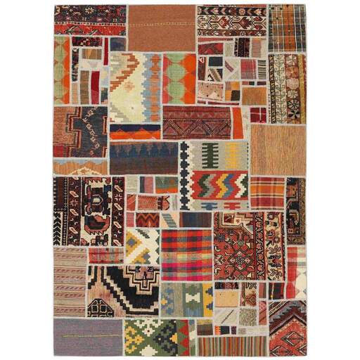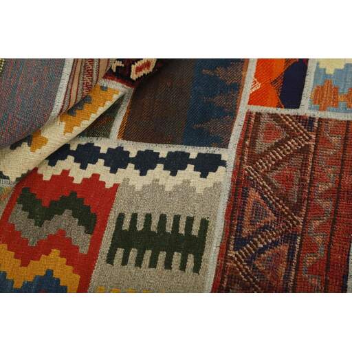 Tekkeh Kelims are produced from older Persian Kelims that have been cut into smaller pieces, sewn together, and given a back cover. Tekkeh means piece, so Tekkeh Kelim means a patchwork rug where many pieces have been sewn together. Tekkeh Kelims are available in many sizes and have thoroughly unique patterns. The rugs are produced from 20-50 year old Kelims. Kelim rugs are hand woven rugs that are made using a special weaving technique, giving the rugs a thinner, felt-like quality. Tekkeh Kelim is produced of older Persian kelim, cut into smaller pieces, sown together and with a backside applied. Tekkeh is the Persian name for pieces, and Tekkeh kelim is an expression for a patchwork rug, where several pieces are sown together. Tekkeh Kelim is available in many sizes and all pieces has unique patterns. used a special weaving technique, that gives the rug a thinner and felt like quality.