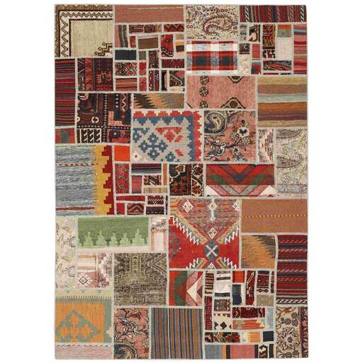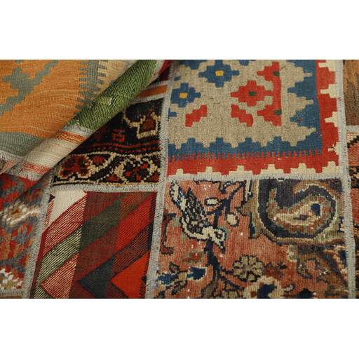 Tekkeh Kelims are produced from older Persian Kelims that have been cut into smaller pieces, sewn together, and given a back cover. Tekkeh means piece, so Tekkeh Kelim means a patchwork rug where many pieces have been sewn together. Tekkeh Kelims are available in many sizes and have thoroughly unique patterns. The rugs are produced from 20-50 year old Kelims. Kelim rugs are hand woven rugs that are made using a special weaving technique, giving the rugs a thinner, felt-like quality. Tekkeh Kelim is produced of older Persian kelim, cut into smaller pieces, sown together and with a backside applied. Tekkeh is the Persian name for pieces, and Tekkeh kelim is an expression for a patchwork rug, where several pieces are sown together. Tekkeh Kelim is available in many sizes and all pieces has unique patterns. used a special weaving technique, that gives the rug a thinner and felt like quality.