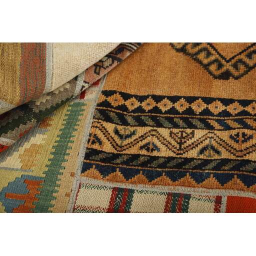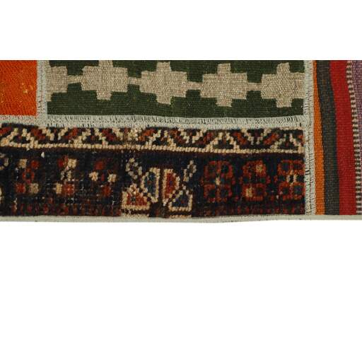 Tekkeh Kelims are produced from older Persian Kelims that have been cut into smaller pieces, sewn together, and given a back cover. Tekkeh means piece, so Tekkeh Kelim means a patchwork rug where many pieces have been sewn together. Tekkeh Kelims are available in many sizes and have thoroughly unique patterns. The rugs are produced from 20-50 year old Kelims. Kelim rugs are hand woven rugs that are made using a special weaving technique, giving the rugs a thinner, felt-like quality. Tekkeh Kelim is produced of older Persian kelim, cut into smaller pieces, sown together and with a backside applied. Tekkeh is the Persian name for pieces, and Tekkeh kelim is an expression for a patchwork rug, where several pieces are sown together. Tekkeh Kelim is available in many sizes and all pieces has unique patterns. used a special weaving technique, that gives the rug a thinner and felt like quality.