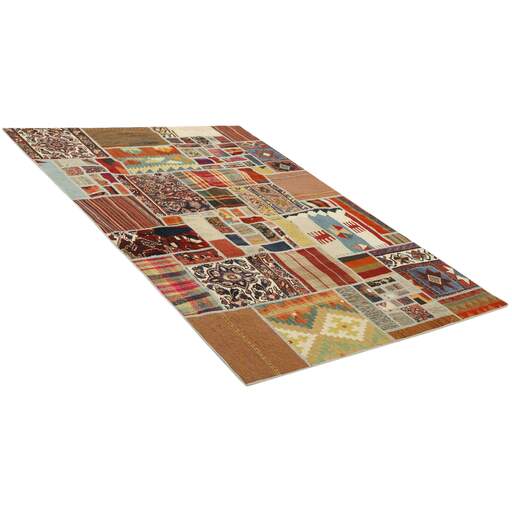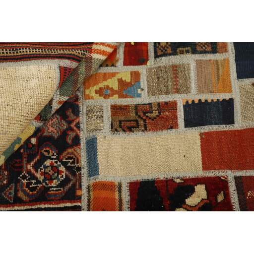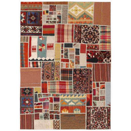 Tekkeh Kelims are produced from older Persian Kelims that have been cut into smaller pieces, sewn together, and given a back cover. Tekkeh means piece, so Tekkeh Kelim means a patchwork rug where many pieces have been sewn together. Tekkeh Kelims are available in many sizes and have thoroughly unique patterns. The rugs are produced from 20-50 year old Kelims. Kelim rugs are hand woven rugs that are made using a special weaving technique, giving the rugs a thinner, felt-like quality. Tekkeh Kelim is produced of older Persian kelim, cut into smaller pieces, sown together and with a backside applied. Tekkeh is the Persian name for pieces, and Tekkeh kelim is an expression for a patchwork rug, where several pieces are sown together. Tekkeh Kelim is available in many sizes and all pieces has unique patterns. used a special weaving technique, that gives the rug a thinner and felt like quality.