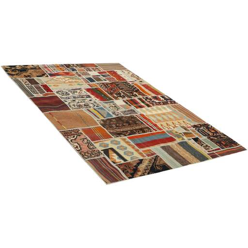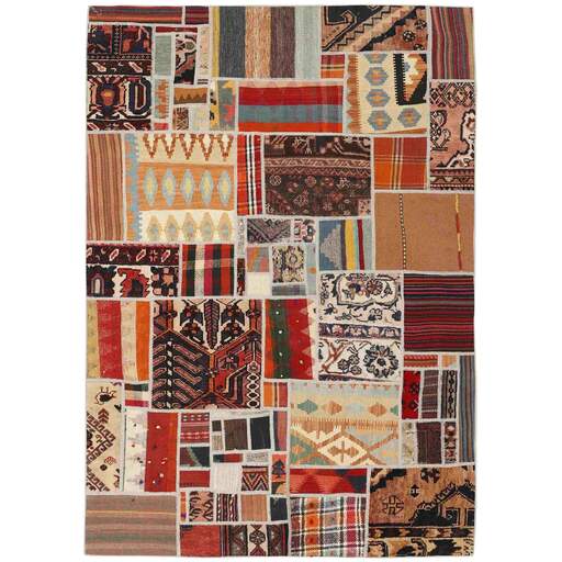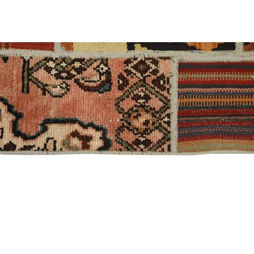 Tekkeh Kelims are produced from older Persian Kelims that have been cut into smaller pieces, sewn together, and given a back cover. Tekkeh means piece, so Tekkeh Kelim means a patchwork rug where many pieces have been sewn together. Tekkeh Kelims are available in many sizes and have thoroughly unique patterns. The rugs are produced from 20-50 year old Kelims. Kelim rugs are hand woven rugs that are made using a special weaving technique, giving the rugs a thinner, felt-like quality. Tekkeh Kelim is produced of older Persian kelim, cut into smaller pieces, sown together and with a backside applied. Tekkeh is the Persian name for pieces, and Tekkeh kelim is an expression for a patchwork rug, where several pieces are sown together. Tekkeh Kelim is available in many sizes and all pieces has unique patterns. used a special weaving technique, that gives the rug a thinner and felt like quality.