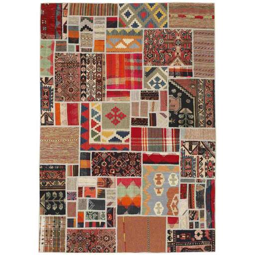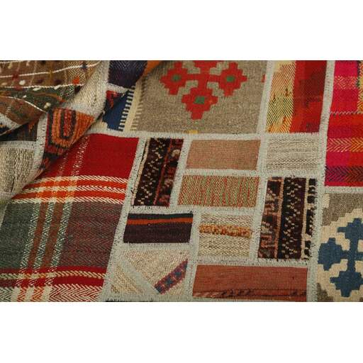 Tekkeh Kelims are produced from older Persian Kelims that have been cut into smaller pieces, sewn together, and given a back cover. Tekkeh means piece, so Tekkeh Kelim means a patchwork rug where many pieces have been sewn together. Tekkeh Kelims are available in many sizes and have thoroughly unique patterns. The rugs are produced from 20-50 year old Kelims. Kelim rugs are hand woven rugs that are made using a special weaving technique, giving the rugs a thinner, felt-like quality. Tekkeh Kelim is produced of older Persian kelim, cut into smaller pieces, sown together and with a backside applied. Tekkeh is the Persian name for pieces, and Tekkeh kelim is an expression for a patchwork rug, where several pieces are sown together. Tekkeh Kelim is available in many sizes and all pieces has unique patterns. used a special weaving technique, that gives the rug a thinner and felt like quality.