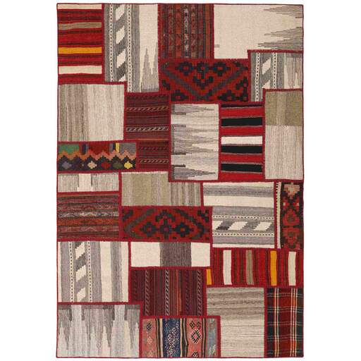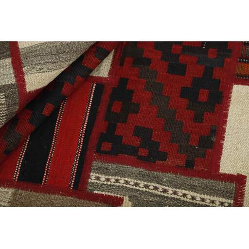 Tekkeh Kelims are produced from older Persian Kelims that have been cut into smaller pieces, sewn together, and given a back cover. Tekkeh means piece, so Tekkeh Kelim means a patchwork rug where many pieces have been sewn together. Tekkeh Kelims are available in many sizes and have thoroughly unique patterns. The rugs are produced from 20-50 year old Kelims. Kelim rugs are hand woven rugs that are made using a special weaving technique, giving the rugs a thinner, felt-like quality. Tekkeh Kelim is produced of older Persian kelim, cut into smaller pieces, sown together and with a backside applied. Tekkeh is the Persian name for pieces, and Tekkeh kelim is an expression for a patchwork rug, where several pieces are sown together. Tekkeh Kelim is available in many sizes and all pieces has unique patterns. used a special weaving technique, that gives the rug a thinner and felt like quality.