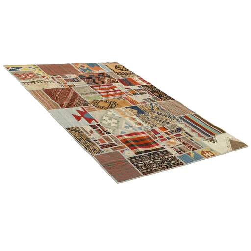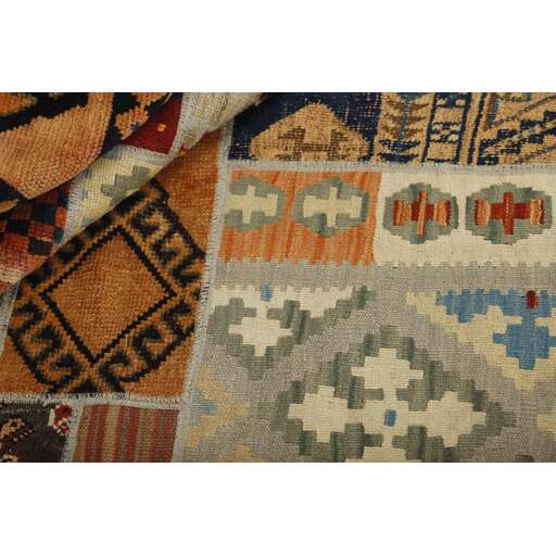 Tekkeh Kelims are produced from older Persian Kelims that have been cut into smaller pieces, sewn together, and given a back cover. Tekkeh means piece, so Tekkeh Kelim means a patchwork rug where many pieces have been sewn together. Tekkeh Kelims are available in many sizes and have thoroughly unique patterns. The rugs are produced from 20-50 year old Kelims. Kelim rugs are hand woven rugs that are made using a special weaving technique, giving the rugs a thinner, felt-like quality. Tekkeh Kelim is produced of older Persian kelim, cut into smaller pieces, sown together and with a backside applied. Tekkeh is the Persian name for pieces, and Tekkeh kelim is an expression for a patchwork rug, where several pieces are sown together. Tekkeh Kelim is available in many sizes and all pieces has unique patterns. used a special weaving technique, that gives the rug a thinner and felt like quality.