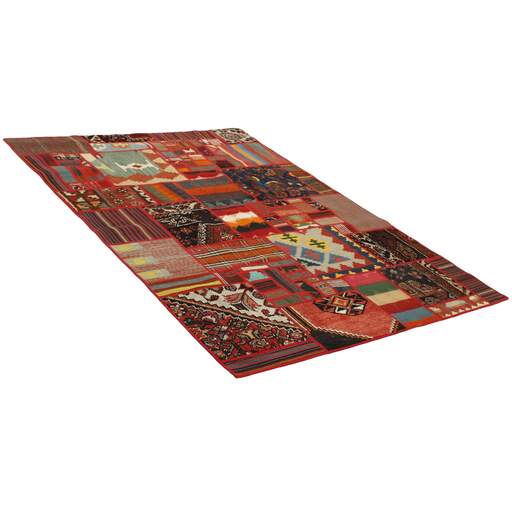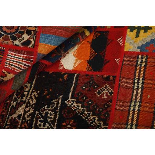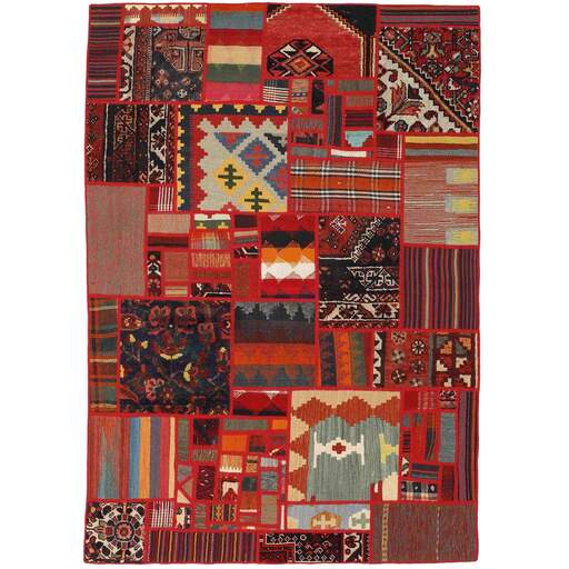 Tekkeh Kelims are produced from older Persian Kelims that have been cut into smaller pieces, sewn together, and given a back cover. Tekkeh means piece, so Tekkeh Kelim means a patchwork rug where many pieces have been sewn together. Tekkeh Kelims are available in many sizes and have thoroughly unique patterns. The rugs are produced from 20-50 year old Kelims. Kelim rugs are hand woven rugs that are made using a special weaving technique, giving the rugs a thinner, felt-like quality. Tekkeh Kelim is produced of older Persian kelim, cut into smaller pieces, sown together and with a backside applied. Tekkeh is the Persian name for pieces, and Tekkeh kelim is an expression for a patchwork rug, where several pieces are sown together. Tekkeh Kelim is available in many sizes and all pieces has unique patterns. used a special weaving technique, that gives the rug a thinner and felt like quality.
