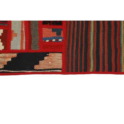 Tekkeh Kelims are produced from older Persian Kelims that have been cut into smaller pieces, sewn together, and given a back cover. Tekkeh means piece, so Tekkeh Kelim means a patchwork rug where many pieces have been sewn together. Tekkeh Kelims are available in many sizes and have thoroughly unique patterns. The rugs are produced from 20-50 year old Kelims. Kelim rugs are hand woven rugs that are made using a special weaving technique, giving the rugs a thinner, felt-like quality. Tekkeh Kelim is produced of older Persian kelim, cut into smaller pieces, sown together and with a backside applied. Tekkeh is the Persian name for pieces, and Tekkeh kelim is an expression for a patchwork rug, where several pieces are sown together. Tekkeh Kelim is available in many sizes and all pieces has unique patterns. used a special weaving technique, that gives the rug a thinner and felt like quality.