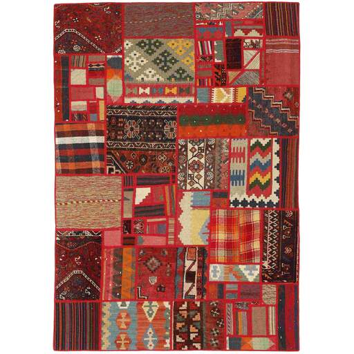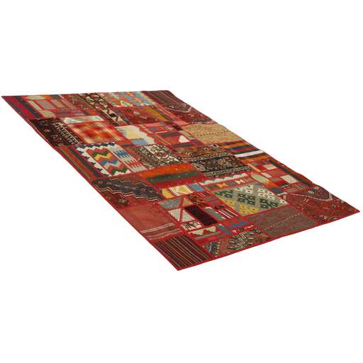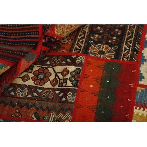 Tekkeh Kelims are produced from older Persian Kelims that have been cut into smaller pieces, sewn together, and given a back cover. Tekkeh means piece, so Tekkeh Kelim means a patchwork rug where many pieces have been sewn together. Tekkeh Kelims are available in many sizes and have thoroughly unique patterns. The rugs are produced from 20-50 year old Kelims. Kelim rugs are hand woven rugs that are made using a special weaving technique, giving the rugs a thinner, felt-like quality. Tekkeh Kelim is produced of older Persian kelim, cut into smaller pieces, sown together and with a backside applied. Tekkeh is the Persian name for pieces, and Tekkeh kelim is an expression for a patchwork rug, where several pieces are sown together. Tekkeh Kelim is available in many sizes and all pieces has unique patterns. used a special weaving technique, that gives the rug a thinner and felt like quality.