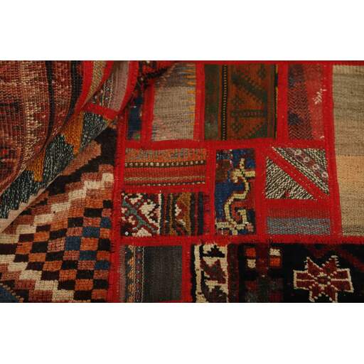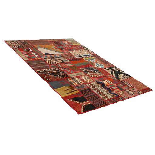Tekkeh Kelims are produced from older Persian Kelims that have been cut into smaller pieces, sewn together, and given a back cover. Tekkeh means piece, so Tekkeh Kelim means a patchwork rug where many pieces have been sewn together. Tekkeh Kelims are available in many sizes and have thoroughly unique patterns. The rugs are produced from 20-50 year old Kelims. Kelim rugs are hand woven rugs that are made using a special weaving technique, giving the rugs a thinner, felt-like quality. Tekkeh Kelim is produced of older Persian kelim, cut into smaller pieces, sown together and with a backside applied. Tekkeh is the Persian name for pieces, and Tekkeh kelim is an expression for a patchwork rug, where several pieces are sown together. Tekkeh Kelim is available in many sizes and all pieces has unique patterns. used a special weaving technique, that gives the rug a thinner and felt like quality.