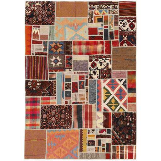 Tekkeh Kelims are produced from older Persian Kelims that have been cut into smaller pieces, sewn together, and given a back cover. Tekkeh means piece, so Tekkeh Kelim means a patchwork rug where many pieces have been sewn together. Tekkeh Kelims are available in many sizes and have thoroughly unique patterns. The rugs are produced from 20-50 year old Kelims. Kelim rugs are hand woven rugs that are made using a special weaving technique, giving the rugs a thinner, felt-like quality. Tekkeh Kelim is produced of older Persian kelim, cut into smaller pieces, sown together and with a backside applied. Tekkeh is the Persian name for pieces, and Tekkeh kelim is an expression for a patchwork rug, where several pieces are sown together. Tekkeh Kelim is available in many sizes and all pieces has unique patterns. used a special weaving technique, that gives the rug a thinner and felt like quality.