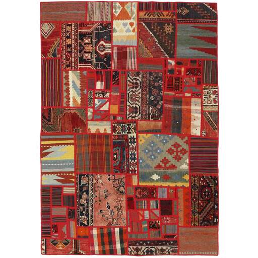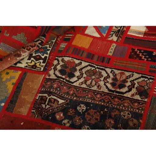 Tekkeh Kelims are produced from older Persian Kelims that have been cut into smaller pieces, sewn together, and given a back cover. Tekkeh means piece, so Tekkeh Kelim means a patchwork rug where many pieces have been sewn together. Tekkeh Kelims are available in many sizes and have thoroughly unique patterns. The rugs are produced from 20-50 year old Kelims. Kelim rugs are hand woven rugs that are made using a special weaving technique, giving the rugs a thinner, felt-like quality. Tekkeh Kelim is produced of older Persian kelim, cut into smaller pieces, sown together and with a backside applied. Tekkeh is the Persian name for pieces, and Tekkeh kelim is an expression for a patchwork rug, where several pieces are sown together. Tekkeh Kelim is available in many sizes and all pieces has unique patterns. used a special weaving technique, that gives the rug a thinner and felt like quality.
