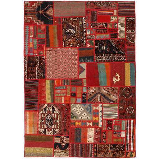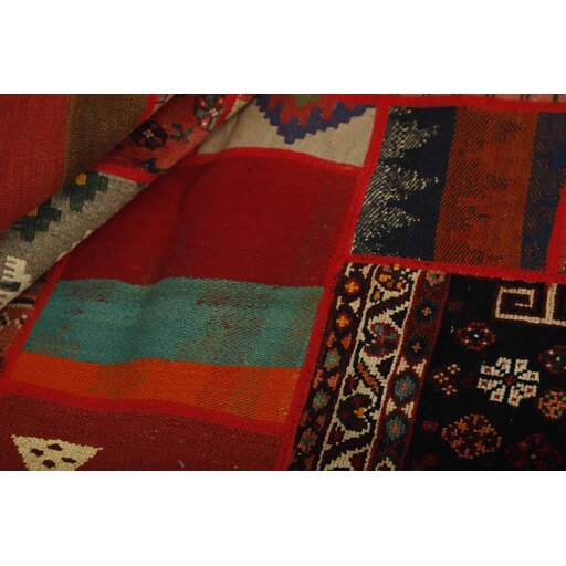 Tekkeh Kelims are produced from older Persian Kelims that have been cut into smaller pieces, sewn together, and given a back cover. Tekkeh means piece, so Tekkeh Kelim means a patchwork rug where many pieces have been sewn together. Tekkeh Kelims are available in many sizes and have thoroughly unique patterns. The rugs are produced from 20-50 year old Kelims. Kelim rugs are hand woven rugs that are made using a special weaving technique, giving the rugs a thinner, felt-like quality. Tekkeh Kelim is produced of older Persian kelim, cut into smaller pieces, sown together and with a backside applied. Tekkeh is the Persian name for pieces, and Tekkeh kelim is an expression for a patchwork rug, where several pieces are sown together. Tekkeh Kelim is available in many sizes and all pieces has unique patterns. used a special weaving technique, that gives the rug a thinner and felt like quality.