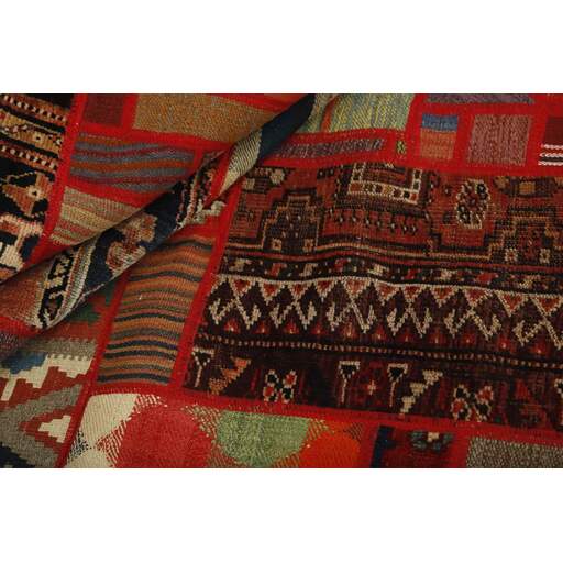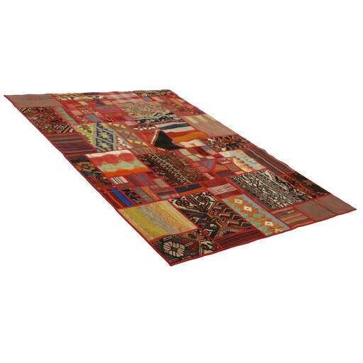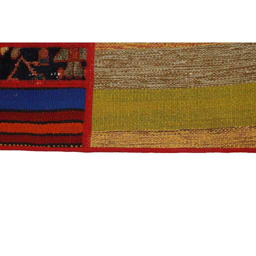 Tekkeh Kelims are produced from older Persian Kelims that have been cut into smaller pieces, sewn together, and given a back cover. Tekkeh means piece, so Tekkeh Kelim means a patchwork rug where many pieces have been sewn together. Tekkeh Kelims are available in many sizes and have thoroughly unique patterns. The rugs are produced from 20-50 year old Kelims. Kelim rugs are hand woven rugs that are made using a special weaving technique, giving the rugs a thinner, felt-like quality. Tekkeh Kelim is produced of older Persian kelim, cut into smaller pieces, sown together and with a backside applied. Tekkeh is the Persian name for pieces, and Tekkeh kelim is an expression for a patchwork rug, where several pieces are sown together. Tekkeh Kelim is available in many sizes and all pieces has unique patterns. used a special weaving technique, that gives the rug a thinner and felt like quality.