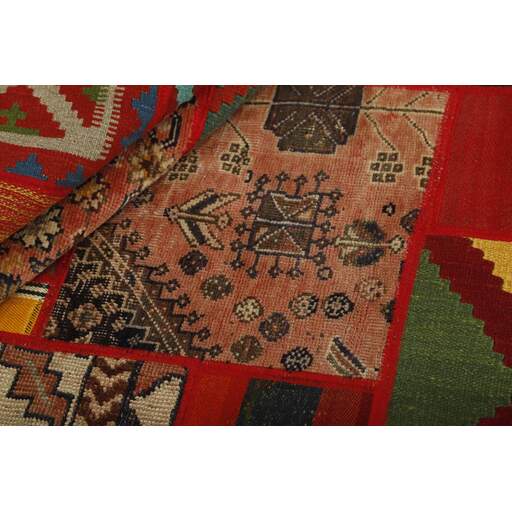 Tekkeh Kelims are produced from older Persian Kelims that have been cut into smaller pieces, sewn together, and given a back cover. Tekkeh means piece, so Tekkeh Kelim means a patchwork rug where many pieces have been sewn together. Tekkeh Kelims are available in many sizes and have thoroughly unique patterns. The rugs are produced from 20-50 year old Kelims. Kelim rugs are hand woven rugs that are made using a special weaving technique, giving the rugs a thinner, felt-like quality. Tekkeh Kelim is produced of older Persian kelim, cut into smaller pieces, sown together and with a backside applied. Tekkeh is the Persian name for pieces, and Tekkeh kelim is an expression for a patchwork rug, where several pieces are sown together. Tekkeh Kelim is available in many sizes and all pieces has unique patterns. used a special weaving technique, that gives the rug a thinner and felt like quality.