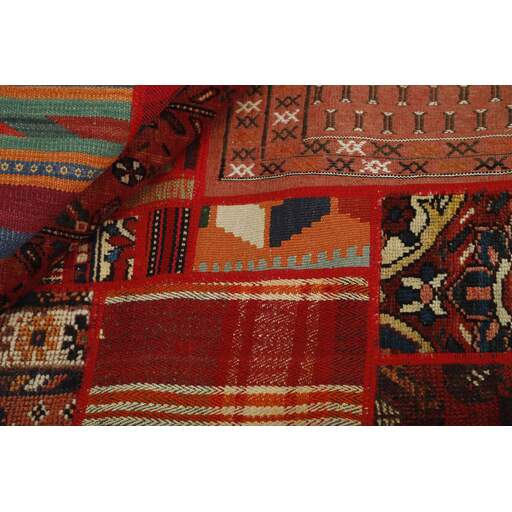 Tekkeh Kelims are produced from older Persian Kelims that have been cut into smaller pieces, sewn together, and given a back cover. Tekkeh means piece, so Tekkeh Kelim means a patchwork rug where many pieces have been sewn together. Tekkeh Kelims are available in many sizes and have thoroughly unique patterns. The rugs are produced from 20-50 year old Kelims. Kelim rugs are hand woven rugs that are made using a special weaving technique, giving the rugs a thinner, felt-like quality. Tekkeh Kelim is produced of older Persian kelim, cut into smaller pieces, sown together and with a backside applied. Tekkeh is the Persian name for pieces, and Tekkeh kelim is an expression for a patchwork rug, where several pieces are sown together. Tekkeh Kelim is available in many sizes and all pieces has unique patterns. used a special weaving technique, that gives the rug a thinner and felt like quality.