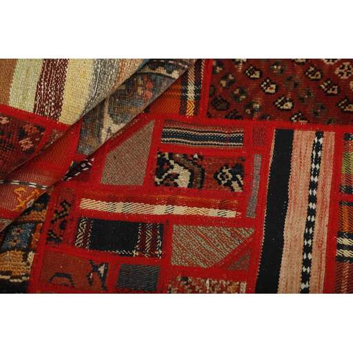 Tekkeh Kelims are produced from older Persian Kelims that have been cut into smaller pieces, sewn together, and given a back cover. Tekkeh means piece, so Tekkeh Kelim means a patchwork rug where many pieces have been sewn together. Tekkeh Kelims are available in many sizes and have thoroughly unique patterns. The rugs are produced from 20-50 year old Kelims. Kelim rugs are hand woven rugs that are made using a special weaving technique, giving the rugs a thinner, felt-like quality. Tekkeh Kelim is produced of older Persian kelim, cut into smaller pieces, sown together and with a backside applied. Tekkeh is the Persian name for pieces, and Tekkeh kelim is an expression for a patchwork rug, where several pieces are sown together. Tekkeh Kelim is available in many sizes and all pieces has unique patterns. used a special weaving technique, that gives the rug a thinner and felt like quality.