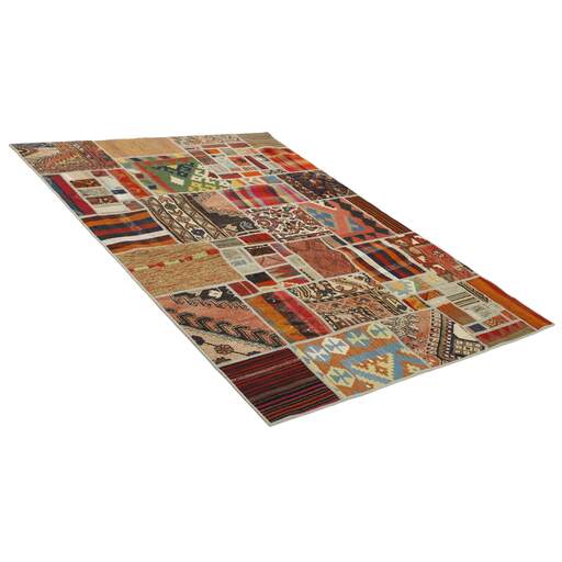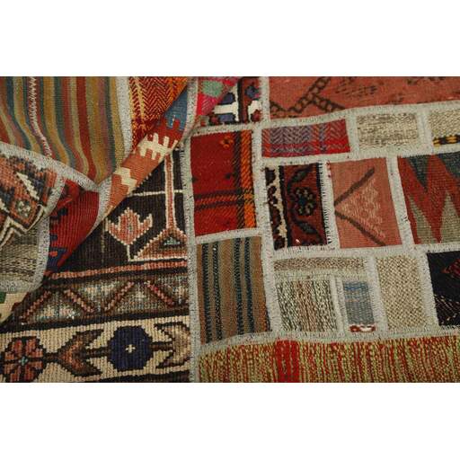 Tekkeh Kelims are produced from older Persian Kelims that have been cut into smaller pieces, sewn together, and given a back cover. Tekkeh means piece, so Tekkeh Kelim means a patchwork rug where many pieces have been sewn together. Tekkeh Kelims are available in many sizes and have thoroughly unique patterns. The rugs are produced from 20-50 year old Kelims. Kelim rugs are hand woven rugs that are made using a special weaving technique, giving the rugs a thinner, felt-like quality. Tekkeh Kelim is produced of older Persian kelim, cut into smaller pieces, sown together and with a backside applied. Tekkeh is the Persian name for pieces, and Tekkeh kelim is an expression for a patchwork rug, where several pieces are sown together. Tekkeh Kelim is available in many sizes and all pieces has unique patterns. used a special weaving technique, that gives the rug a thinner and felt like quality.