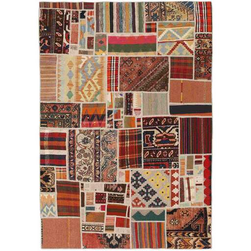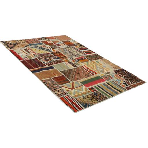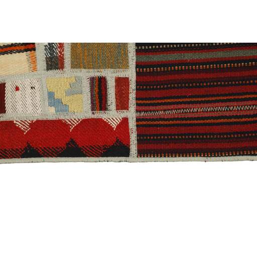 Tekkeh Kelims are produced from older Persian Kelims that have been cut into smaller pieces, sewn together, and given a back cover. Tekkeh means piece, so Tekkeh Kelim means a patchwork rug where many pieces have been sewn together. Tekkeh Kelims are available in many sizes and have thoroughly unique patterns. The rugs are produced from 20-50 year old Kelims. Kelim rugs are hand woven rugs that are made using a special weaving technique, giving the rugs a thinner, felt-like quality. Tekkeh Kelim is produced of older Persian kelim, cut into smaller pieces, sown together and with a backside applied. Tekkeh is the Persian name for pieces, and Tekkeh kelim is an expression for a patchwork rug, where several pieces are sown together. Tekkeh Kelim is available in many sizes and all pieces has unique patterns. used a special weaving technique, that gives the rug a thinner and felt like quality.