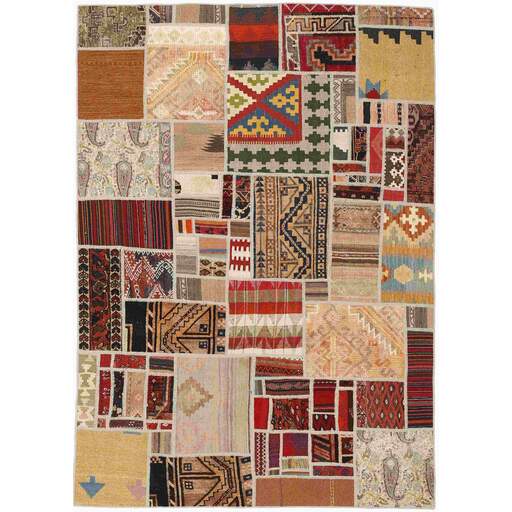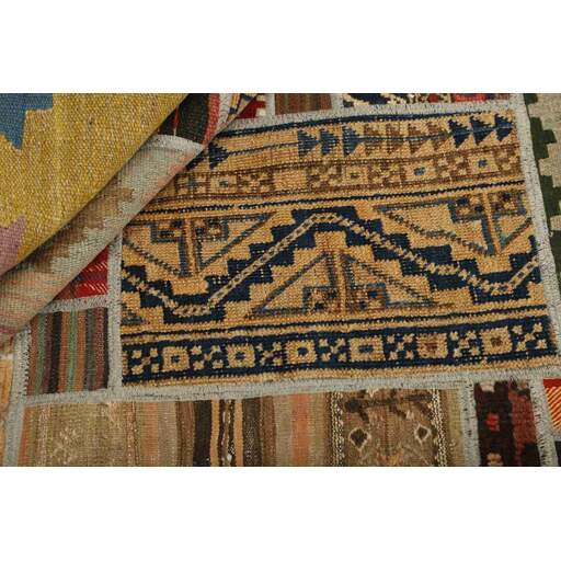 Tekkeh Kelims are produced from older Persian Kelims that have been cut into smaller pieces, sewn together, and given a back cover. Tekkeh means piece, so Tekkeh Kelim means a patchwork rug where many pieces have been sewn together. Tekkeh Kelims are available in many sizes and have thoroughly unique patterns. The rugs are produced from 20-50 year old Kelims. Kelim rugs are hand woven rugs that are made using a special weaving technique, giving the rugs a thinner, felt-like quality. Tekkeh Kelim is produced of older Persian kelim, cut into smaller pieces, sown together and with a backside applied. Tekkeh is the Persian name for pieces, and Tekkeh kelim is an expression for a patchwork rug, where several pieces are sown together. Tekkeh Kelim is available in many sizes and all pieces has unique patterns. used a special weaving technique, that gives the rug a thinner and felt like quality.
