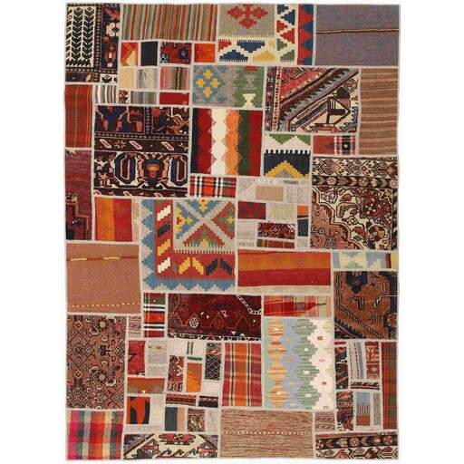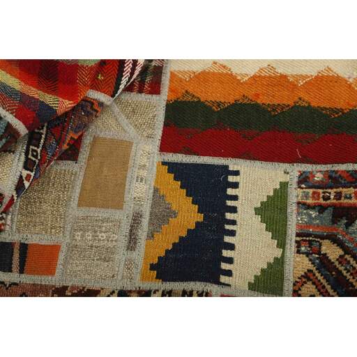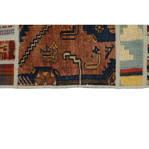 Tekkeh Kelims are produced from older Persian Kelims that have been cut into smaller pieces, sewn together, and given a back cover. Tekkeh means piece, so Tekkeh Kelim means a patchwork rug where many pieces have been sewn together. Tekkeh Kelims are available in many sizes and have thoroughly unique patterns. The rugs are produced from 20-50 year old Kelims. Kelim rugs are hand woven rugs that are made using a special weaving technique, giving the rugs a thinner, felt-like quality. Tekkeh Kelim is produced of older Persian kelim, cut into smaller pieces, sown together and with a backside applied. Tekkeh is the Persian name for pieces, and Tekkeh kelim is an expression for a patchwork rug, where several pieces are sown together. Tekkeh Kelim is available in many sizes and all pieces has unique patterns. used a special weaving technique, that gives the rug a thinner and felt like quality.