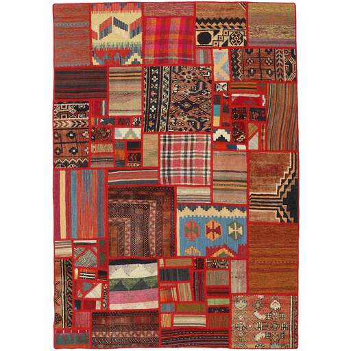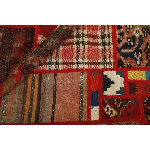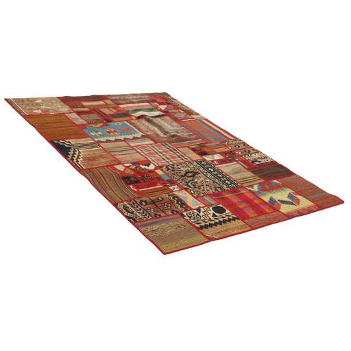 Tekkeh Kelims are produced from older Persian Kelims that have been cut into smaller pieces, sewn together, and given a back cover. Tekkeh means piece, so Tekkeh Kelim means a patchwork rug where many pieces have been sewn together. Tekkeh Kelims are available in many sizes and have thoroughly unique patterns. The rugs are produced from 20-50 year old Kelims. Kelim rugs are hand woven rugs that are made using a special weaving technique, giving the rugs a thinner, felt-like quality. Tekkeh Kelim is produced of older Persian kelim, cut into smaller pieces, sown together and with a backside applied. Tekkeh is the Persian name for pieces, and Tekkeh kelim is an expression for a patchwork rug, where several pieces are sown together. Tekkeh Kelim is available in many sizes and all pieces has unique patterns. used a special weaving technique, that gives the rug a thinner and felt like quality.