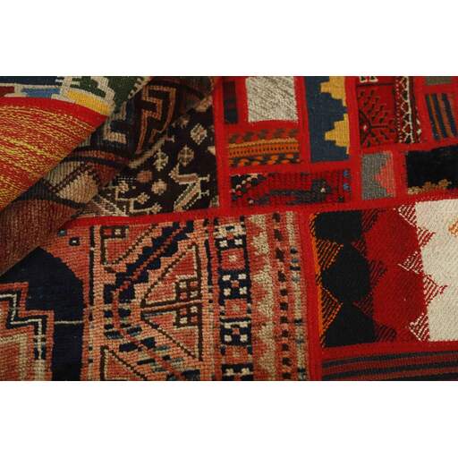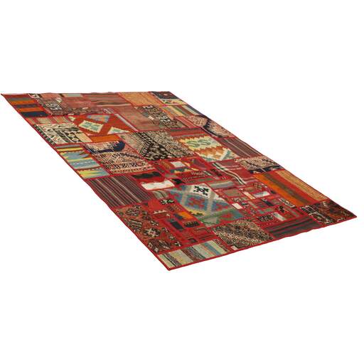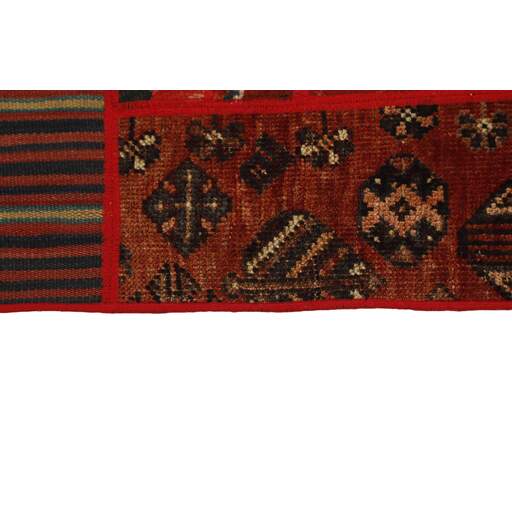 Tekkeh Kelims are produced from older Persian Kelims that have been cut into smaller pieces, sewn together, and given a back cover. Tekkeh means piece, so Tekkeh Kelim means a patchwork rug where many pieces have been sewn together. Tekkeh Kelims are available in many sizes and have thoroughly unique patterns. The rugs are produced from 20-50 year old Kelims. Kelim rugs are hand woven rugs that are made using a special weaving technique, giving the rugs a thinner, felt-like quality. Tekkeh Kelim is produced of older Persian kelim, cut into smaller pieces, sown together and with a backside applied. Tekkeh is the Persian name for pieces, and Tekkeh kelim is an expression for a patchwork rug, where several pieces are sown together. Tekkeh Kelim is available in many sizes and all pieces has unique patterns. used a special weaving technique, that gives the rug a thinner and felt like quality.