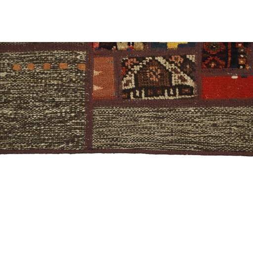 Tekkeh Kelims are produced from older Persian Kelims that have been cut into smaller pieces, sewn together, and given a back cover. Tekkeh means piece, so Tekkeh Kelim means a patchwork rug where many pieces have been sewn together. Tekkeh Kelims are available in many sizes and have thoroughly unique patterns. The rugs are produced from 20-50 year old Kelims. Kelim rugs are hand woven rugs that are made using a special weaving technique, giving the rugs a thinner, felt-like quality. Tekkeh Kelim is produced of older Persian kelim, cut into smaller pieces, sown together and with a backside applied. Tekkeh is the Persian name for pieces, and Tekkeh kelim is an expression for a patchwork rug, where several pieces are sown together. Tekkeh Kelim is available in many sizes and all pieces has unique patterns. used a special weaving technique, that gives the rug a thinner and felt like quality.