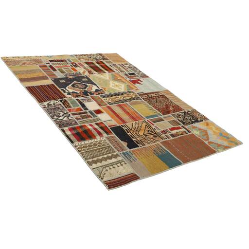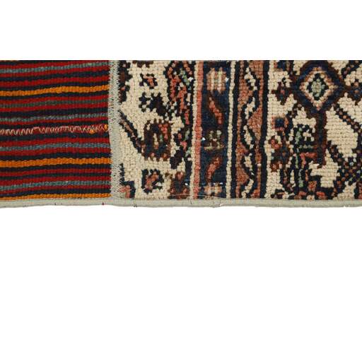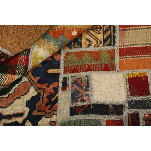 Tekkeh Kelims are produced from older Persian Kelims that have been cut into smaller pieces, sewn together, and given a back cover. Tekkeh means piece, so Tekkeh Kelim means a patchwork rug where many pieces have been sewn together. Tekkeh Kelims are available in many sizes and have thoroughly unique patterns. The rugs are produced from 20-50 year old Kelims. Kelim rugs are hand woven rugs that are made using a special weaving technique, giving the rugs a thinner, felt-like quality. Tekkeh Kelim is produced of older Persian kelim, cut into smaller pieces, sown together and with a backside applied. Tekkeh is the Persian name for pieces, and Tekkeh kelim is an expression for a patchwork rug, where several pieces are sown together. Tekkeh Kelim is available in many sizes and all pieces has unique patterns. used a special weaving technique, that gives the rug a thinner and felt like quality.