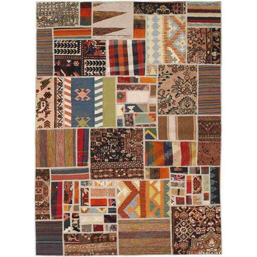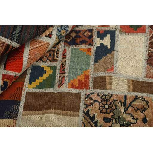 Tekkeh Kelims are produced from older Persian Kelims that have been cut into smaller pieces, sewn together, and given a back cover. Tekkeh means piece, so Tekkeh Kelim means a patchwork rug where many pieces have been sewn together. Tekkeh Kelims are available in many sizes and have thoroughly unique patterns. The rugs are produced from 20-50 year old Kelims. Kelim rugs are hand woven rugs that are made using a special weaving technique, giving the rugs a thinner, felt-like quality. Tekkeh Kelim is produced of older Persian kelim, cut into smaller pieces, sown together and with a backside applied. Tekkeh is the Persian name for pieces, and Tekkeh kelim is an expression for a patchwork rug, where several pieces are sown together. Tekkeh Kelim is available in many sizes and all pieces has unique patterns. used a special weaving technique, that gives the rug a thinner and felt like quality.