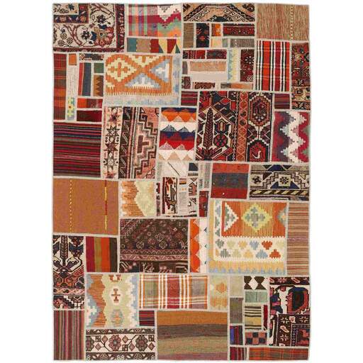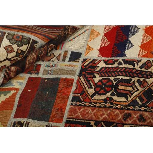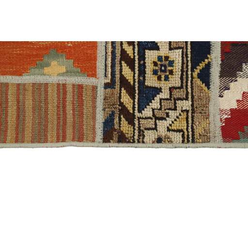 Tekkeh Kelims are produced from older Persian Kelims that have been cut into smaller pieces, sewn together, and given a back cover. Tekkeh means piece, so Tekkeh Kelim means a patchwork rug where many pieces have been sewn together. Tekkeh Kelims are available in many sizes and have thoroughly unique patterns. The rugs are produced from 20-50 year old Kelims. Kelim rugs are hand woven rugs that are made using a special weaving technique, giving the rugs a thinner, felt-like quality. Tekkeh Kelim is produced of older Persian kelim, cut into smaller pieces, sown together and with a backside applied. Tekkeh is the Persian name for pieces, and Tekkeh kelim is an expression for a patchwork rug, where several pieces are sown together. Tekkeh Kelim is available in many sizes and all pieces has unique patterns. used a special weaving technique, that gives the rug a thinner and felt like quality.