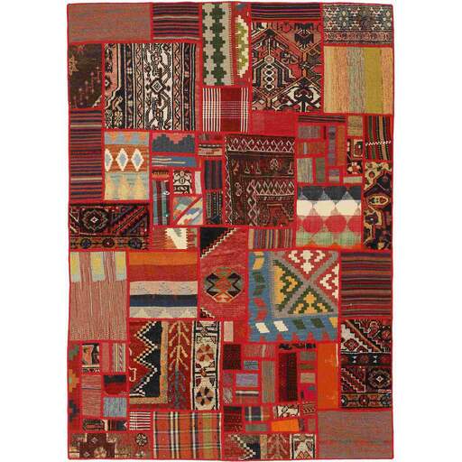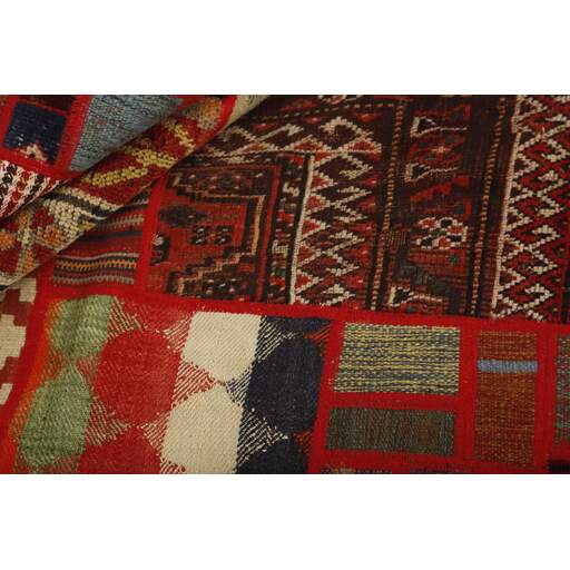 Tekkeh Kelims are produced from older Persian Kelims that have been cut into smaller pieces, sewn together, and given a back cover. Tekkeh means piece, so Tekkeh Kelim means a patchwork rug where many pieces have been sewn together. Tekkeh Kelims are available in many sizes and have thoroughly unique patterns. The rugs are produced from 20-50 year old Kelims. Kelim rugs are hand woven rugs that are made using a special weaving technique, giving the rugs a thinner, felt-like quality. Tekkeh Kelim is produced of older Persian kelim, cut into smaller pieces, sown together and with a backside applied. Tekkeh is the Persian name for pieces, and Tekkeh kelim is an expression for a patchwork rug, where several pieces are sown together. Tekkeh Kelim is available in many sizes and all pieces has unique patterns. used a special weaving technique, that gives the rug a thinner and felt like quality.