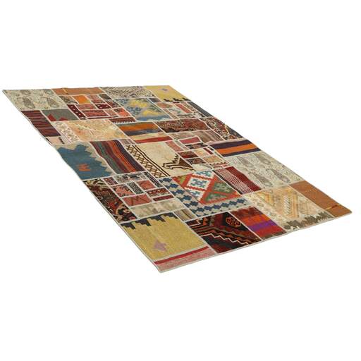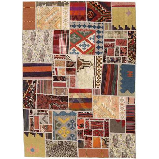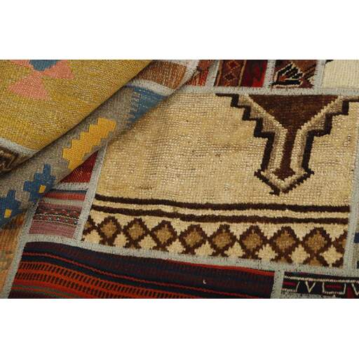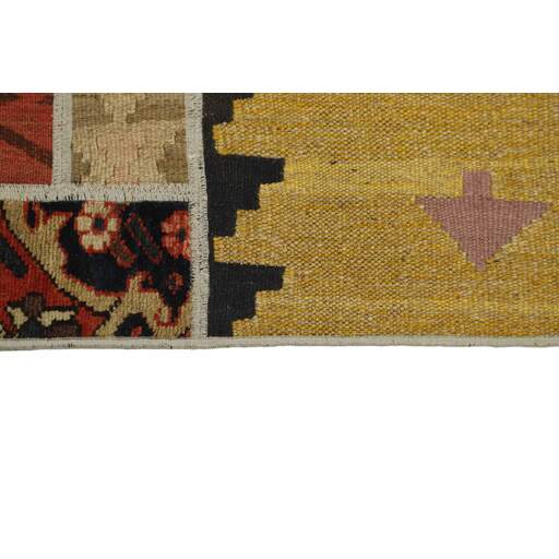 Tekkeh Kelims are produced from older Persian Kelims that have been cut into smaller pieces, sewn together, and given a back cover. Tekkeh means piece, so Tekkeh Kelim means a patchwork rug where many pieces have been sewn together. Tekkeh Kelims are available in many sizes and have thoroughly unique patterns. The rugs are produced from 20-50 year old Kelims. Kelim rugs are hand woven rugs that are made using a special weaving technique, giving the rugs a thinner, felt-like quality. Tekkeh Kelim is produced of older Persian kelim, cut into smaller pieces, sown together and with a backside applied. Tekkeh is the Persian name for pieces, and Tekkeh kelim is an expression for a patchwork rug, where several pieces are sown together. Tekkeh Kelim is available in many sizes and all pieces has unique patterns. used a special weaving technique, that gives the rug a thinner and felt like quality.