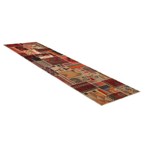 Tekkeh Kelims are produced from older Persian Kelims that have been cut into smaller pieces, sewn together, and given a back cover. Tekkeh means piece, so Tekkeh Kelim means a patchwork rug where many pieces have been sewn together. Tekkeh Kelims are available in many sizes and have thoroughly unique patterns. The rugs are produced from 20-50 year old Kelims. Kelim rugs are hand woven rugs that are made using a special weaving technique, giving the rugs a thinner, felt-like quality. Tekkeh Kelim is produced of older Persian kelim, cut into smaller pieces, sown together and with a backside applied. Tekkeh is the Persian name for pieces, and Tekkeh kelim is an expression for a patchwork rug, where several pieces are sown together. Tekkeh Kelim is available in many sizes and all pieces has unique patterns. used a special weaving technique, that gives the rug a thinner and felt like quality.