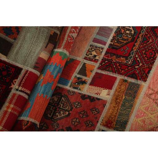Tekkeh Kelims are produced from older Persian Kelims that have been cut into smaller pieces, sewn together, and given a back cover. Tekkeh means piece, so Tekkeh Kelim means a patchwork rug where many pieces have been sewn together. Tekkeh Kelims are available in many sizes and have thoroughly unique patterns. The rugs are produced from 20-50 year old Kelims. Kelim rugs are hand woven rugs that are made using a special weaving technique, giving the rugs a thinner, felt-like quality. Tekkeh Kelim is produced of older Persian kelim, cut into smaller pieces, sown together and with a backside applied. Tekkeh is the Persian name for pieces, and Tekkeh kelim is an expression for a patchwork rug, where several pieces are sown together. Tekkeh Kelim is available in many sizes and all pieces has unique patterns. used a special weaving technique, that gives the rug a thinner and felt like quality.