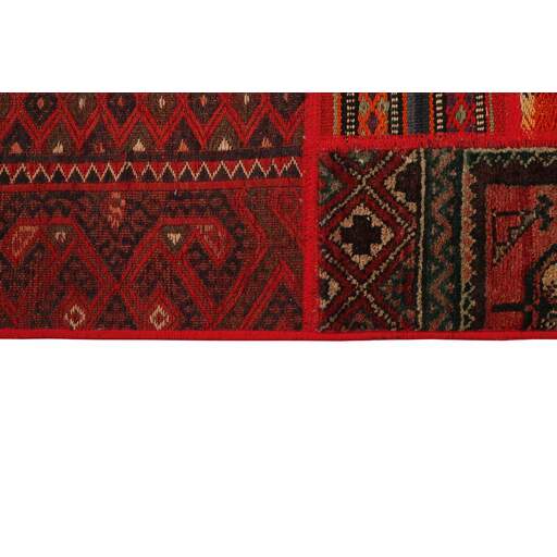 Tekkeh Kelims are produced from older Persian Kelims that have been cut into smaller pieces, sewn together, and given a back cover. Tekkeh means piece, so Tekkeh Kelim means a patchwork rug where many pieces have been sewn together. Tekkeh Kelims are available in many sizes and have thoroughly unique patterns. The rugs are produced from 20-50 year old Kelims. Kelim rugs are hand woven rugs that are made using a special weaving technique, giving the rugs a thinner, felt-like quality. Tekkeh Kelim is produced of older Persian kelim, cut into smaller pieces, sown together and with a backside applied. Tekkeh is the Persian name for pieces, and Tekkeh kelim is an expression for a patchwork rug, where several pieces are sown together. Tekkeh Kelim is available in many sizes and all pieces has unique patterns. used a special weaving technique, that gives the rug a thinner and felt like quality.