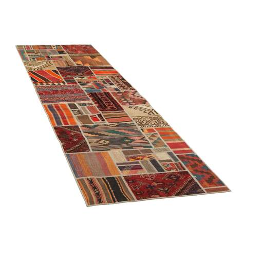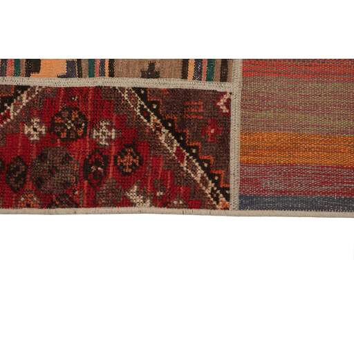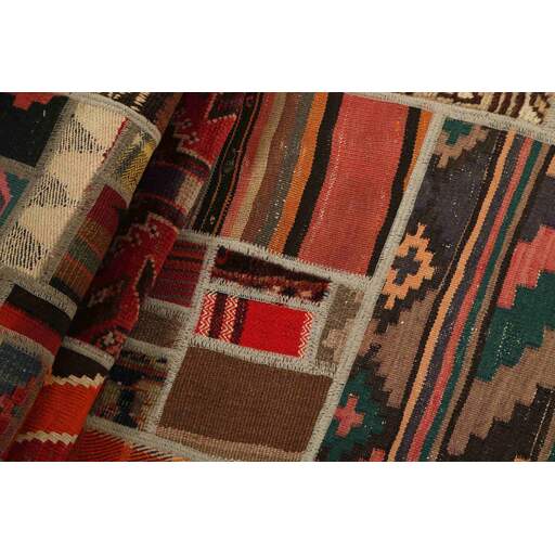 Tekkeh Kelims are produced from older Persian Kelims that have been cut into smaller pieces, sewn together, and given a back cover. Tekkeh means piece, so Tekkeh Kelim means a patchwork rug where many pieces have been sewn together. Tekkeh Kelims are available in many sizes and have thoroughly unique patterns. The rugs are produced from 20-50 year old Kelims. Kelim rugs are hand woven rugs that are made using a special weaving technique, giving the rugs a thinner, felt-like quality. Tekkeh Kelim is produced of older Persian kelim, cut into smaller pieces, sown together and with a backside applied. Tekkeh is the Persian name for pieces, and Tekkeh kelim is an expression for a patchwork rug, where several pieces are sown together. Tekkeh Kelim is available in many sizes and all pieces has unique patterns. used a special weaving technique, that gives the rug a thinner and felt like quality.