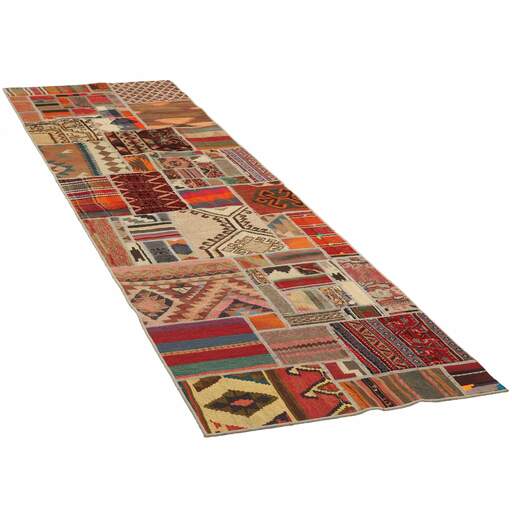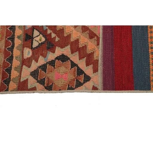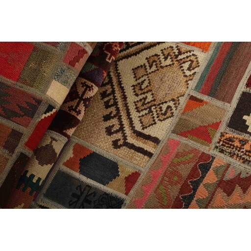 Tekkeh Kelims are produced from older Persian Kelims that have been cut into smaller pieces, sewn together, and given a back cover. Tekkeh means piece, so Tekkeh Kelim means a patchwork rug where many pieces have been sewn together. Tekkeh Kelims are available in many sizes and have thoroughly unique patterns. The rugs are produced from 20-50 year old Kelims. Kelim rugs are hand woven rugs that are made using a special weaving technique, giving the rugs a thinner, felt-like quality. Tekkeh Kelim is produced of older Persian kelim, cut into smaller pieces, sown together and with a backside applied. Tekkeh is the Persian name for pieces, and Tekkeh kelim is an expression for a patchwork rug, where several pieces are sown together. Tekkeh Kelim is available in many sizes and all pieces has unique patterns. used a special weaving technique, that gives the rug a thinner and felt like quality.