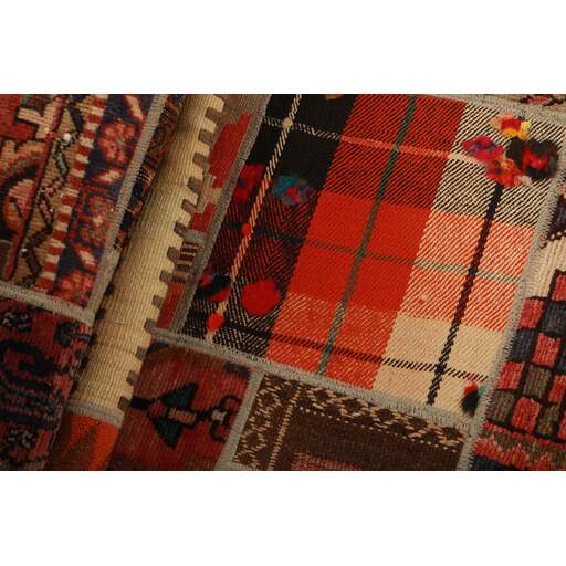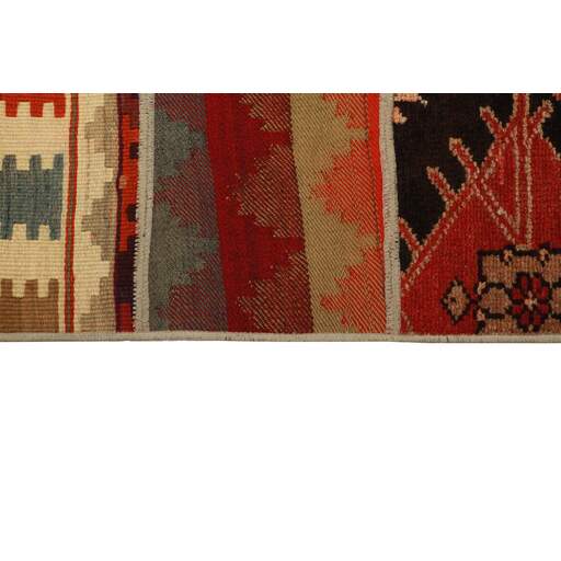 Tekkeh Kelims are produced from older Persian Kelims that have been cut into smaller pieces, sewn together, and given a back cover. Tekkeh means piece, so Tekkeh Kelim means a patchwork rug where many pieces have been sewn together. Tekkeh Kelims are available in many sizes and have thoroughly unique patterns. The rugs are produced from 20-50 year old Kelims. Kelim rugs are hand woven rugs that are made using a special weaving technique, giving the rugs a thinner, felt-like quality. Tekkeh Kelim is produced of older Persian kelim, cut into smaller pieces, sown together and with a backside applied. Tekkeh is the Persian name for pieces, and Tekkeh kelim is an expression for a patchwork rug, where several pieces are sown together. Tekkeh Kelim is available in many sizes and all pieces has unique patterns. used a special weaving technique, that gives the rug a thinner and felt like quality.