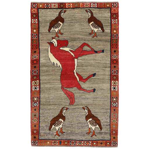 The Kashghai are Iran’s largest and most well known tribe. They speak a Turkish dialect, and are believed to have come from the Caucasus in the 18th century to their current areas, around Shiraz in the Fars Province of southern Iran. Their belligerent attitude has lead to conflicts with changing governments, as well as other tribes in the area. Both their rugs and the women’s clothing clearly show their skills and love of colours. Many subtribes exist, the most important ones being the Bilvedi, the Shishbouki, the Darashuri, and the Kashkuli. The Kashghai knot numerous types of rugs, but a characteristic product can be distinguished by its wool construction, the sturdy ridges on the back, its strong, deep colours (especially the red), as well as by the use of traditional motifs such as Harshang or the crab. The patterns are geometrical, typically with three or five medallions along the centre of the rug or in the middle and corners. The entire field is usually covered in small geometrical motifs. Persepolis motifs can often be found in the rugs. The Kashghai are also famous for their older crafts, such as horse blankets, saddlebags, and rope. The products of other tribes, such as the Kamseh and the Lori, are often mistaken for those of the Kashghai.