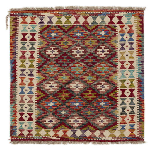 Afghan Kelim rugs are hand woven by Turkmens in northern Afghanistan. Kelim is the name of a common Persian weave, but also of the technology used in the production. Kelims are primarily produced by nomads and are pile-less rugs, which are also used for bags, as wall decoration, or as curtains for tents. A natural colour scale with geometrical symbols and octagons is used.