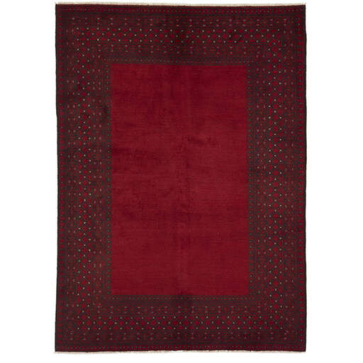 Aktscha rugs are knotted by Turkmens in the Aktscha (Acqcha) district, which is situated in the central part of the Jowzjan Province of northern Afghanistan. The Aktscha rugs are very similar to the Old Afghan (Khal Mohammadi) rugs, but are of a lower quality, as the knot density is lower. The rugs have the same characteristics, with the deep, warm, and fiery red base colour, the relatively high and sturdy pile, the wool base weave, and the use of goat’s and horse’s hair. The Gül (Elephant’s Foot) pattern is the primary pattern of the Aktscha rugs.