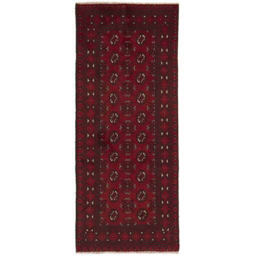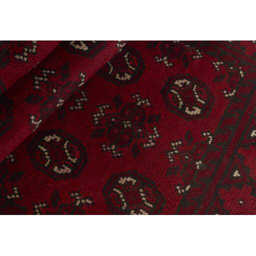 Aktscha rugs are knotted by Turkmens in the Aktscha (Acqcha) district, which is situated in the central part of the Jowzjan Province of northern Afghanistan. The Aktscha rugs are very similar to the Old Afghan (Khal Mohammadi) rugs, but are of a lower quality, as the knot density is lower. The rugs have the same characteristics, with the deep, warm, and fiery red base colour, the relatively high and sturdy pile, the wool base weave, and the use of goat’s and horse’s hair. The Gül (Elephant’s Foot) pattern is the primary pattern of the Aktscha rugs.