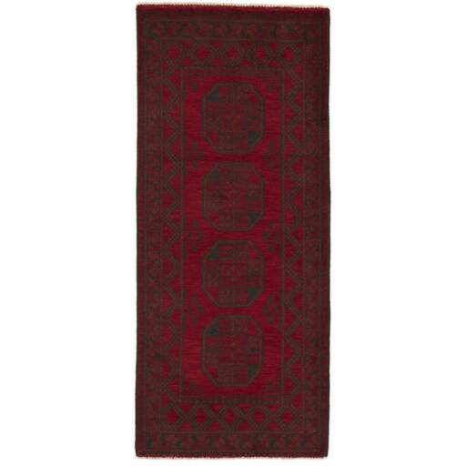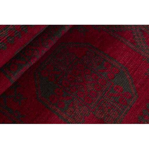 Aktscha rugs are knotted by Turkmens in the Aktscha (Acqcha) district, which is situated in the central part of the Jowzjan Province of northern Afghanistan. The Aktscha rugs are very similar to the Old Afghan (Khal Mohammadi) rugs, but are of a lower quality, as the knot density is lower. The rugs have the same characteristics, with the deep, warm, and fiery red base colour, the relatively high and sturdy pile, the wool base weave, and the use of goat’s and horse’s hair. The Gül (Elephant’s Foot) pattern is the primary pattern of the Aktscha rugs.