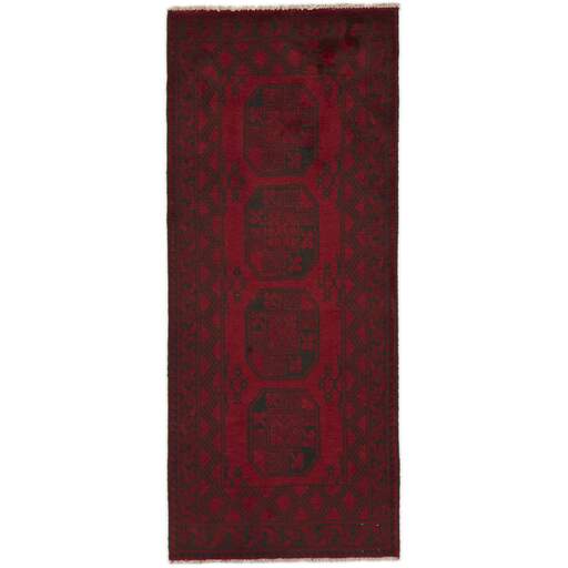 Aktscha rugs are knotted by Turkmens in the Aktscha (Acqcha) district, which is situated in the central part of the Jowzjan Province of northern Afghanistan. The Aktscha rugs are very similar to the Old Afghan (Khal Mohammadi) rugs, but are of a lower quality, as the knot density is lower. The rugs have the same characteristics, with the deep, warm, and fiery red base colour, the relatively high and sturdy pile, the wool base weave, and the use of goat’s and horse’s hair. The Gül (Elephant’s Foot) pattern is the primary pattern of the Aktscha rugs.