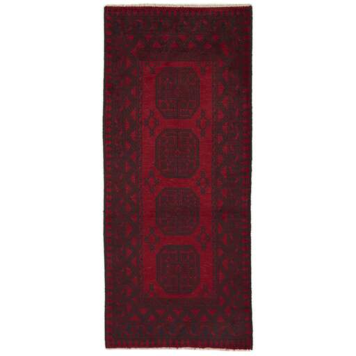 Aktscha rugs are knotted by Turkmens in the Aktscha (Acqcha) district, which is situated in the central part of the Jowzjan Province of northern Afghanistan. The Aktscha rugs are very similar to the Old Afghan (Khal Mohammadi) rugs, but are of a lower quality, as the knot density is lower. The rugs have the same characteristics, with the deep, warm, and fiery red base colour, the relatively high and sturdy pile, the wool base weave, and the use of goat’s and horse’s hair. The Gül (Elephant’s Foot) pattern is the primary pattern of the Aktscha rugs.