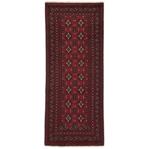 Aktscha rugs are knotted by Turkmens in the Aktscha (Acqcha) district, which is situated in the central part of the Jowzjan Province of northern Afghanistan. The Aktscha rugs are very similar to the Old Afghan (Khal Mohammadi) rugs, but are of a lower quality, as the knot density is lower. The rugs have the same characteristics, with the deep, warm, and fiery red base colour, the relatively high and sturdy pile, the wool base weave, and the use of goat’s and horse’s hair. The Gül (Elephant’s Foot) pattern is the primary pattern of the Aktscha rugs.