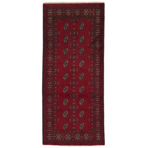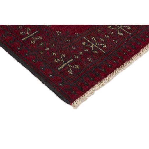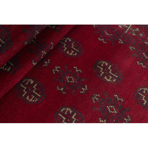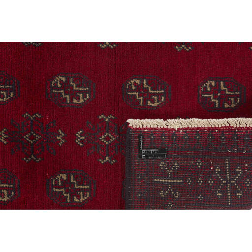 Aktscha rugs are knotted by Turkmens in the Aktscha (Acqcha) district, which is situated in the central part of the Jowzjan Province of northern Afghanistan. The Aktscha rugs are very similar to the Old Afghan (Khal Mohammadi) rugs, but are of a lower quality, as the knot density is lower. The rugs have the same characteristics, with the deep, warm, and fiery red base colour, the relatively high and sturdy pile, the wool base weave, and the use of goat’s and horse’s hair. The Gül (Elephant’s Foot) pattern is the primary pattern of the Aktscha rugs.